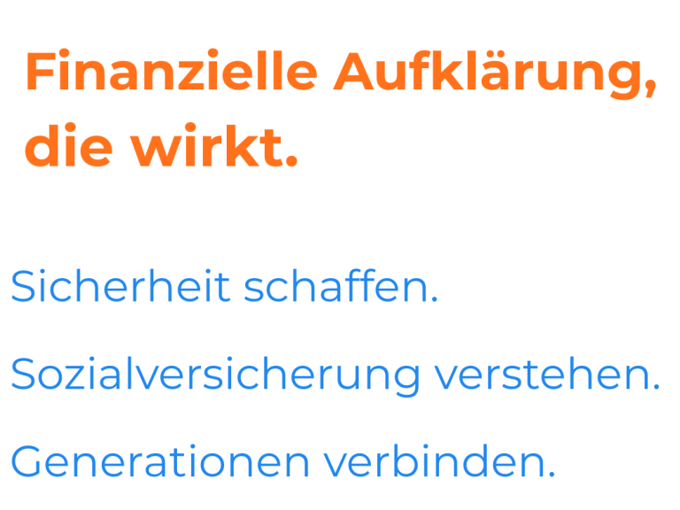 Wir vermitteln finanzielle Bildung rund um die gesetzliche Sozialversicherung, Gehalt und rechtliche & finanzieller Vorsorge.